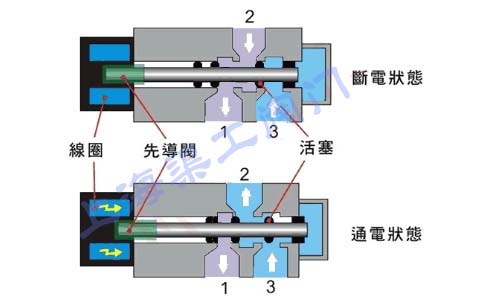 四、單電控二位三通電磁閥工作原理
